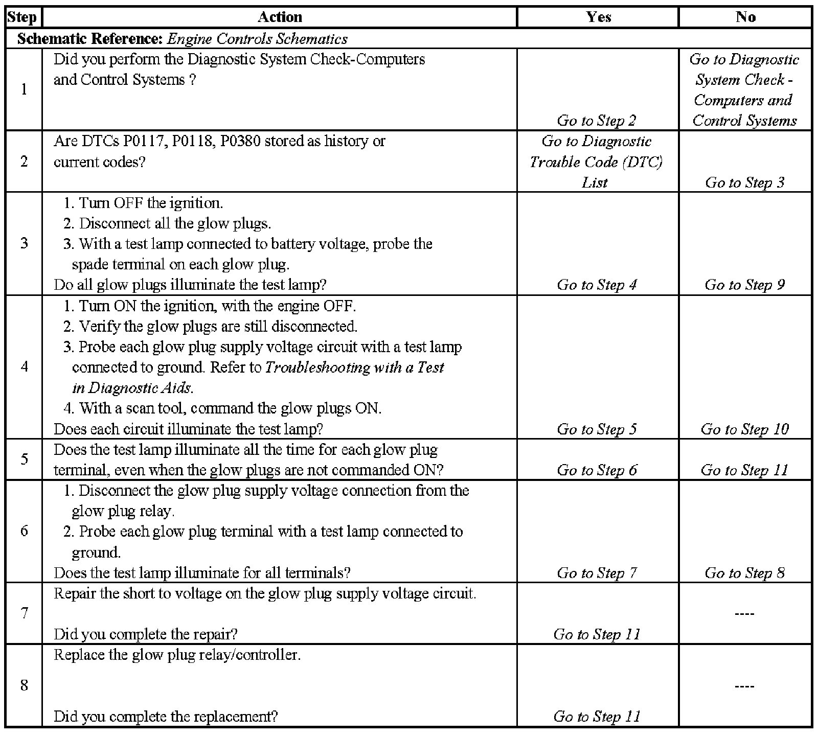 Glow Plug System Diagnosis - Steps 1-8: