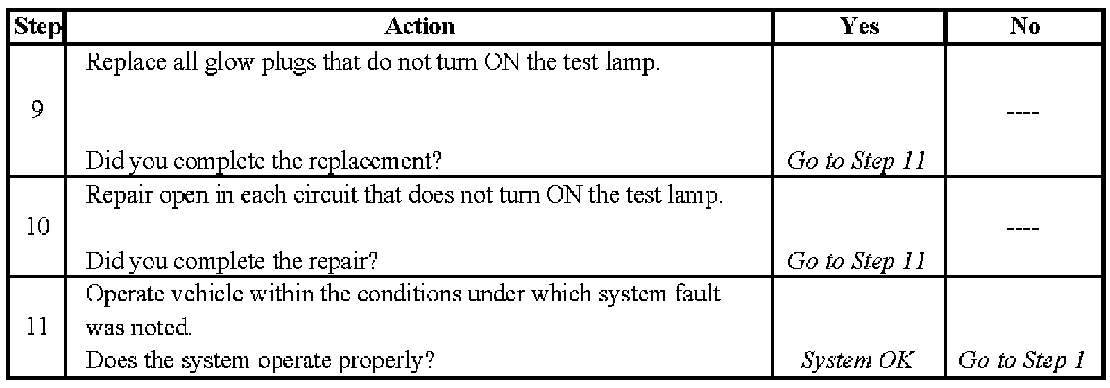 Glow Plug System Diagnosis - Steps 9-11: