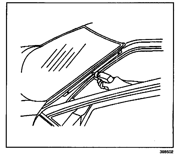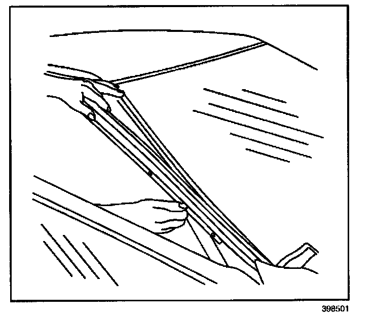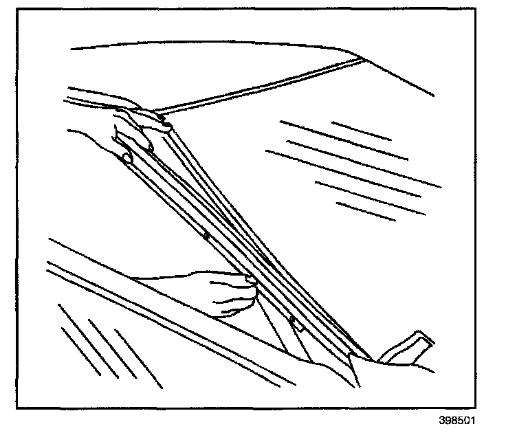 IMPORTANT: The upper window reveal molding fills the cavities between the body and window. If the reveal molding is stretched or damaged, replace the molding.