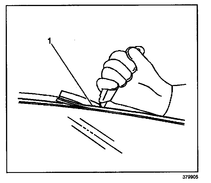 11. Remove the window lower supports (1) by using a flat-bladed tool, lightly prying upward in the middle until the support releases.