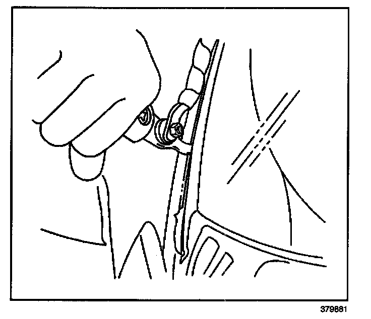 IMPORTANT: The window lower supports have molded locks with an urethane adhesive strip on the back side. Once the window lower stops have been removed, the stops must be replaced.