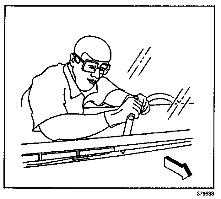 CAUTION: Refer to Glass and Sheet Metal Handling Caution in Service Precautions.