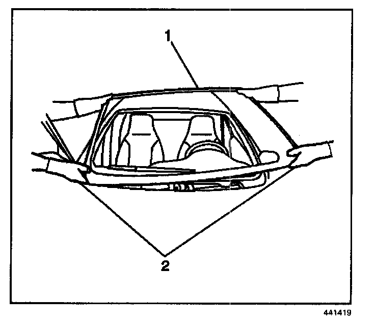 14. With the aid of an assistant (2) remove the window (1) from the vehicle.