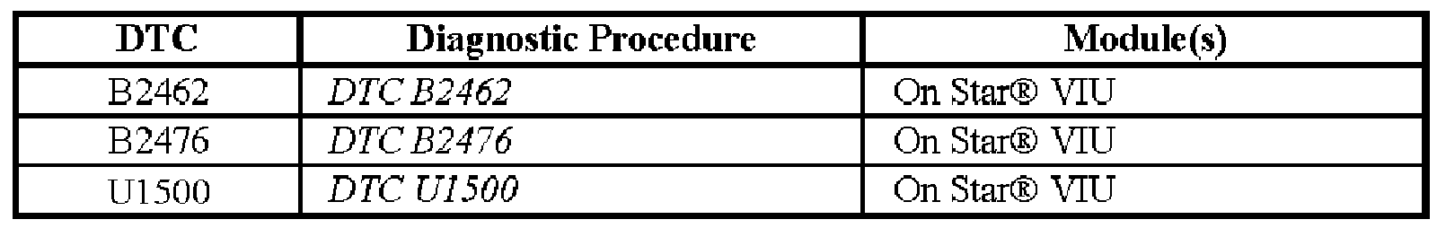 Diagnostic Trouble Code (DTC) List: