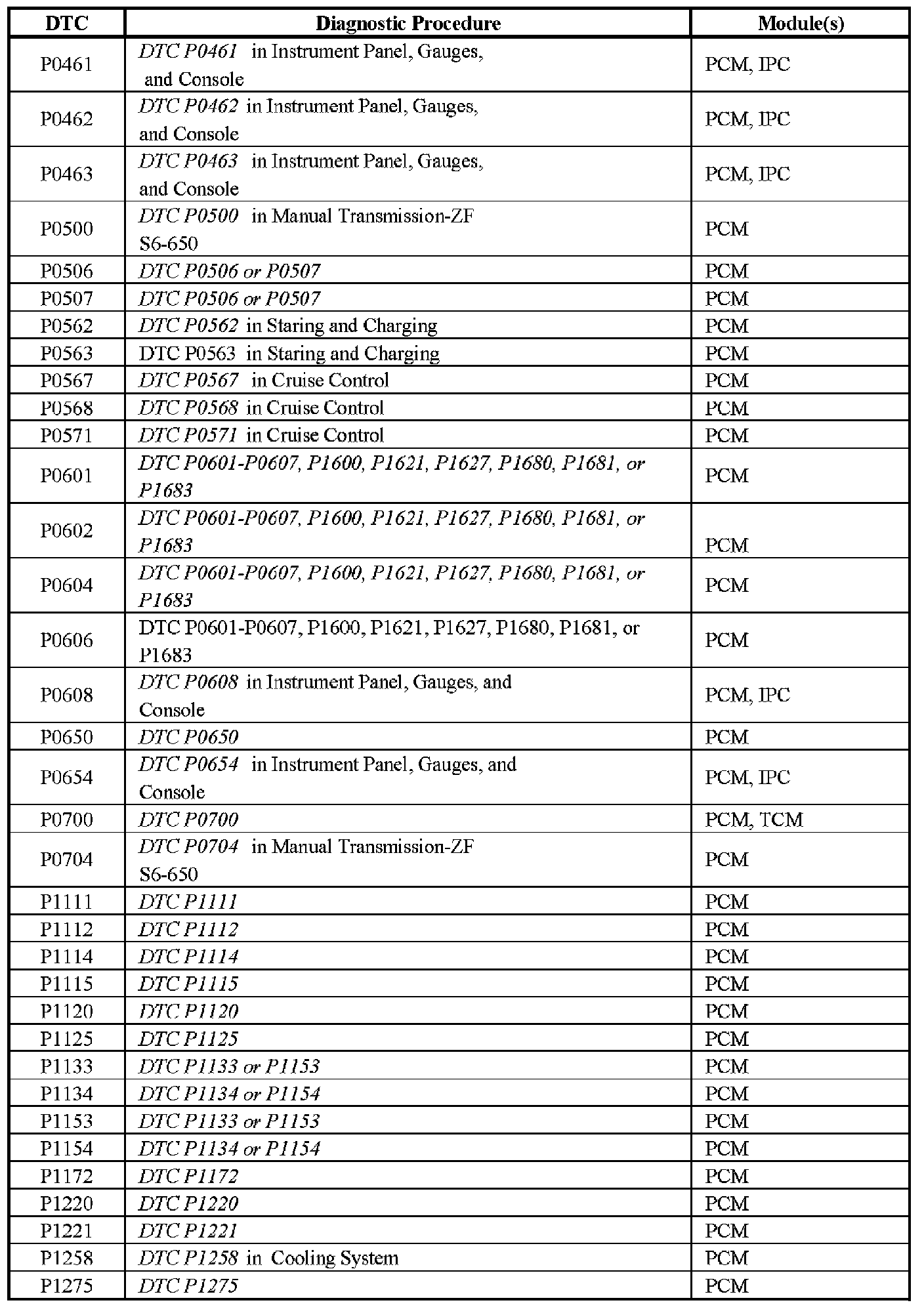 Diagnostic Trouble Code List/System