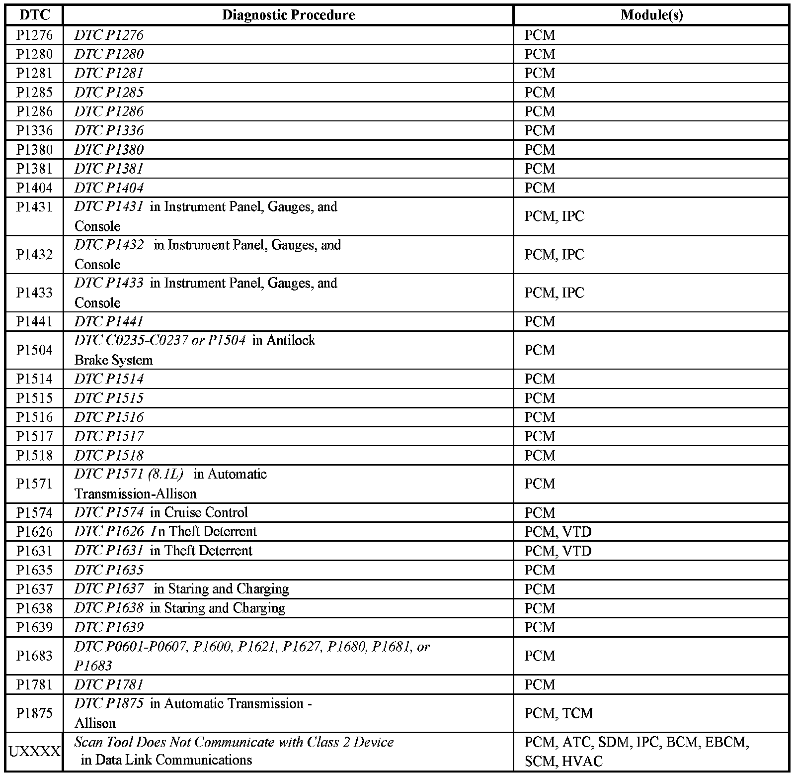 A L L Diagnostic Trouble Codes ( DTC )