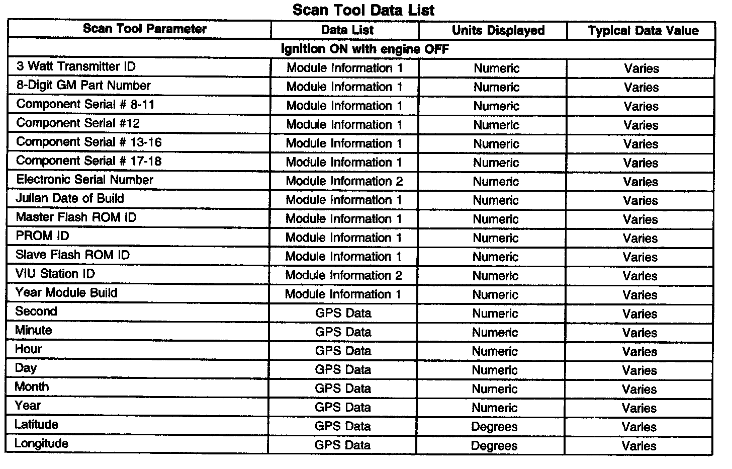 Scan Tool Data List