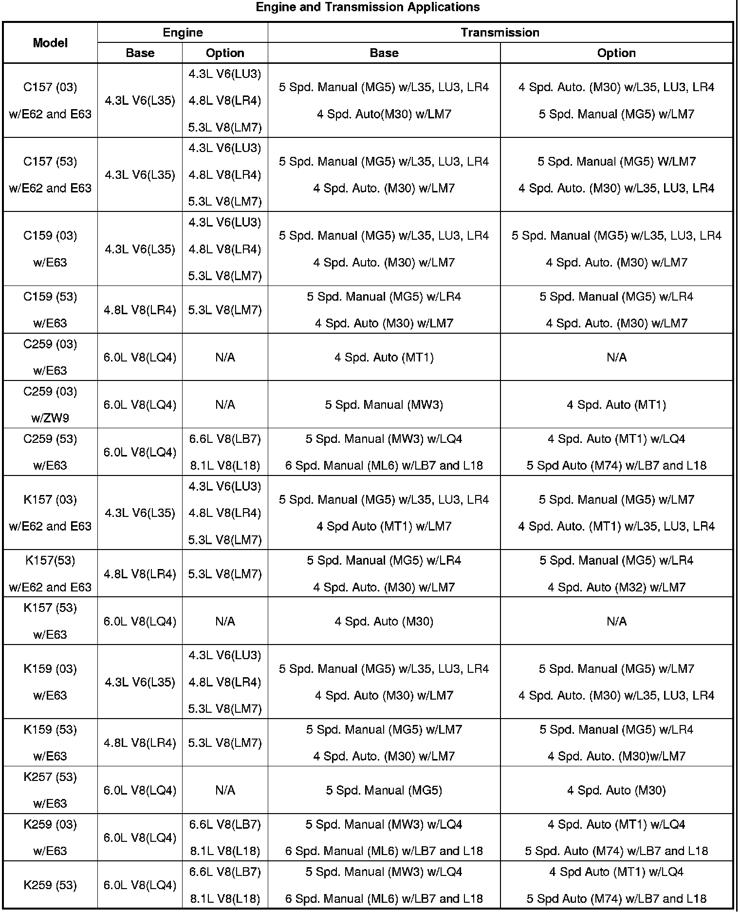 Engine and Transmission Usage