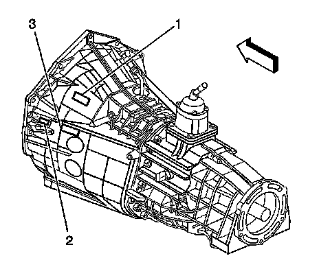 The transmission vehicle identification number location PIN or hand stamp (1, 3). Vehicle identification number location PIN or hand stamp (2).