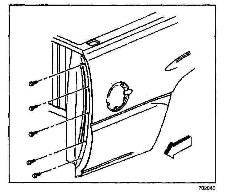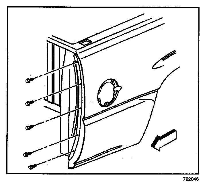 6. Remove the bolts that retain the fender to the rear pillar.