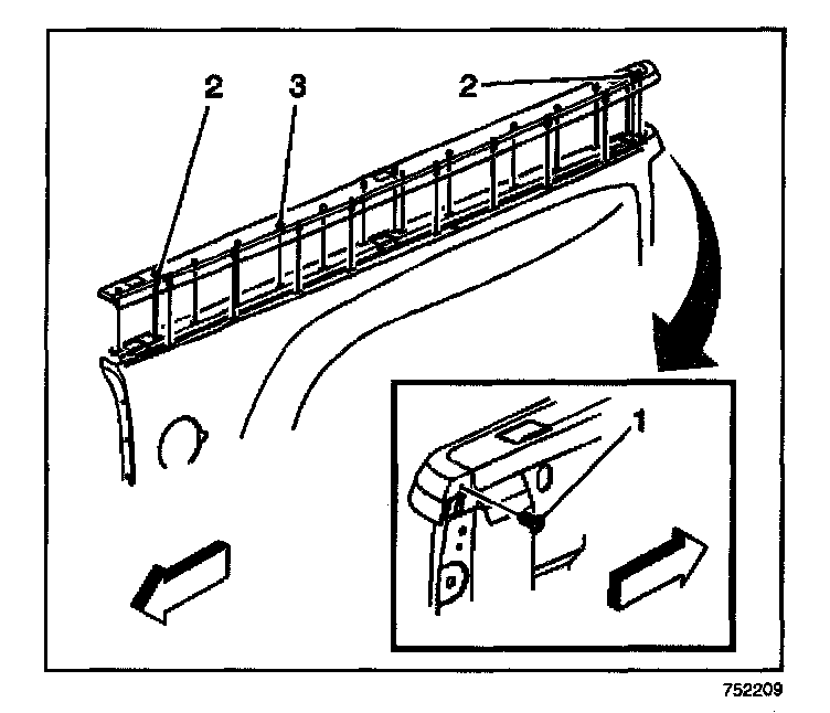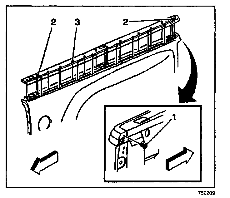 REMOVAL PROCEDURE1. Remove the upper molding rear retainer (1) from the tender.