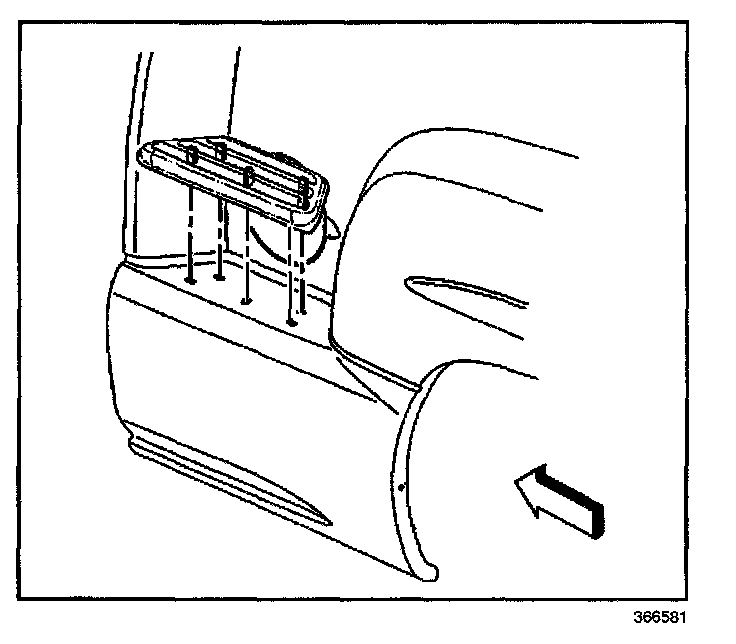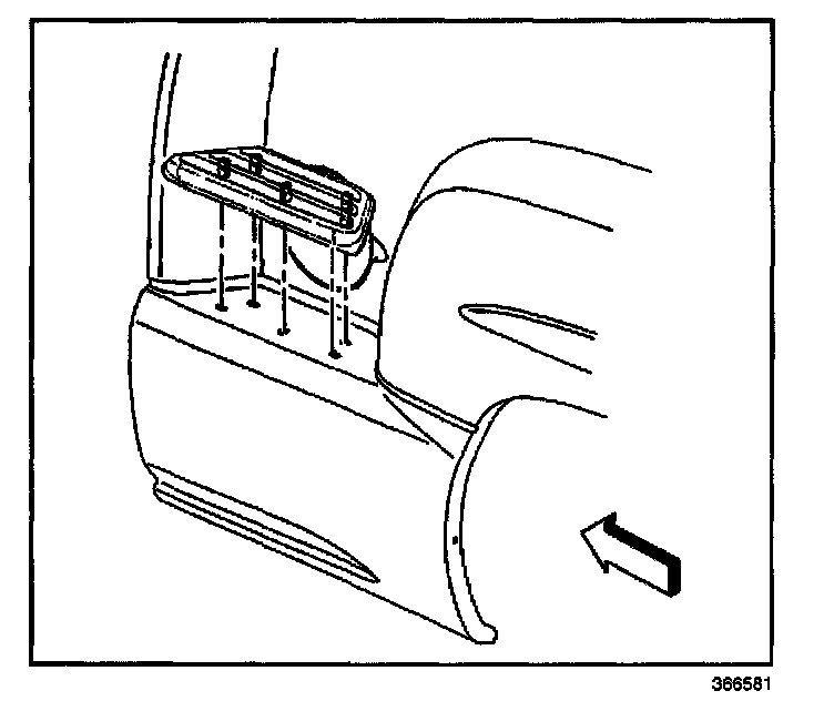3. Install the fender to the rear pillar retaining bolts through the tail lamp opening.