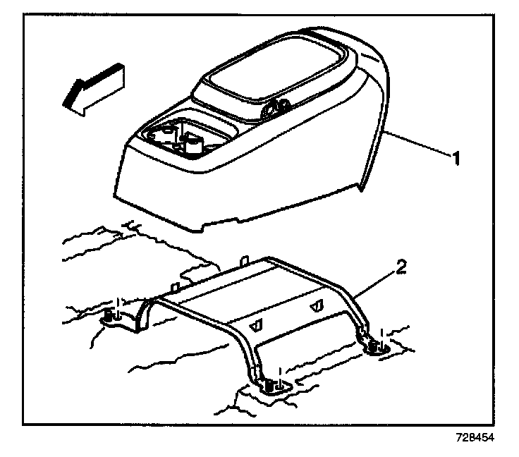 2. Remove the center console (1) from the bracket.