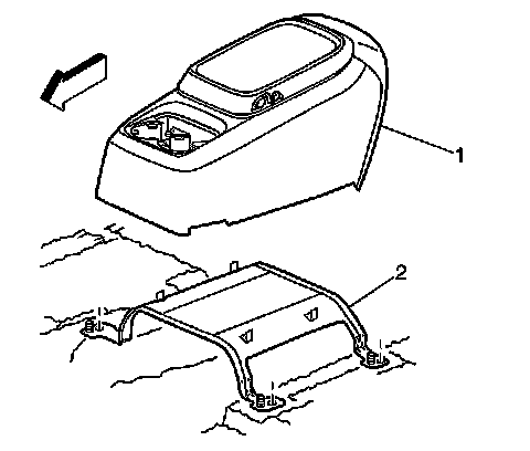2. Remove the center console (1) from the bracket. Refer to Console Replacement (Luxury Console) (Console Replacement (Luxury Console))Console Replacement (Base Console) (Console Replacement (Base Console))Console Replacement (Pro) (Console Replacement (Pro)).