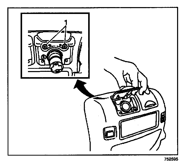 5. Remove the 2 screws (1) retaining the power outlet cover to the console end panel.