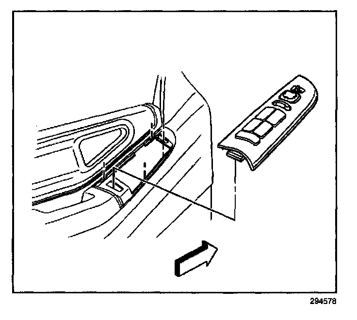 REMOVAL PROCEDURE1. Insert a flat-bladed tool into the slots on the power accessory switch panel in order to release the retainer clips.