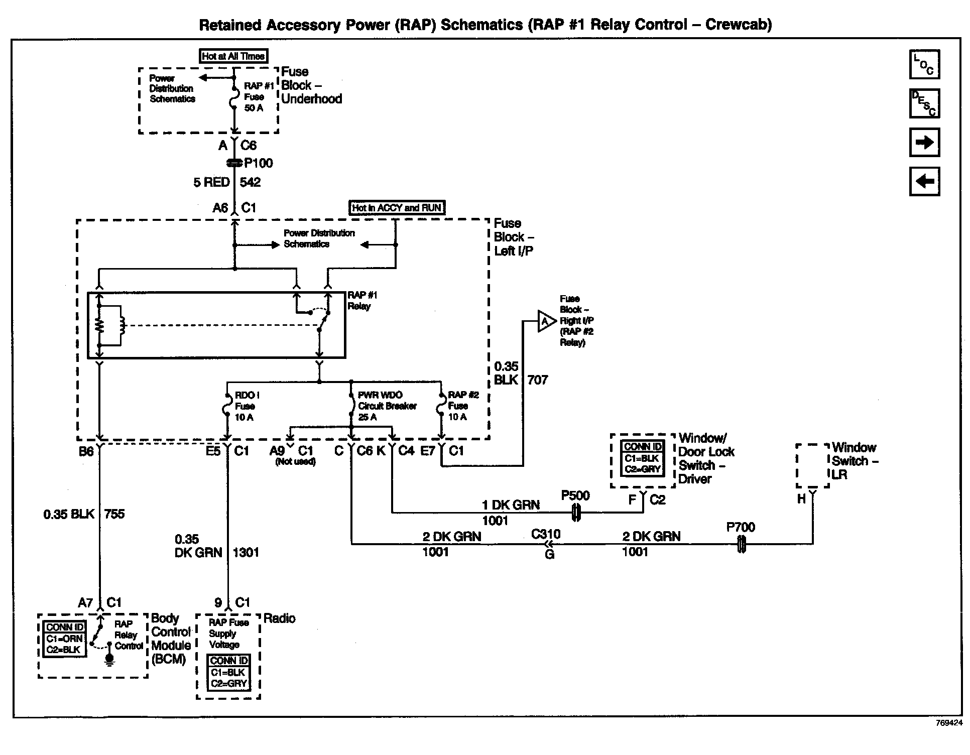Retained Accessory Power (RAP) Schematics: RAP #1 Relay Control - Crewcab: