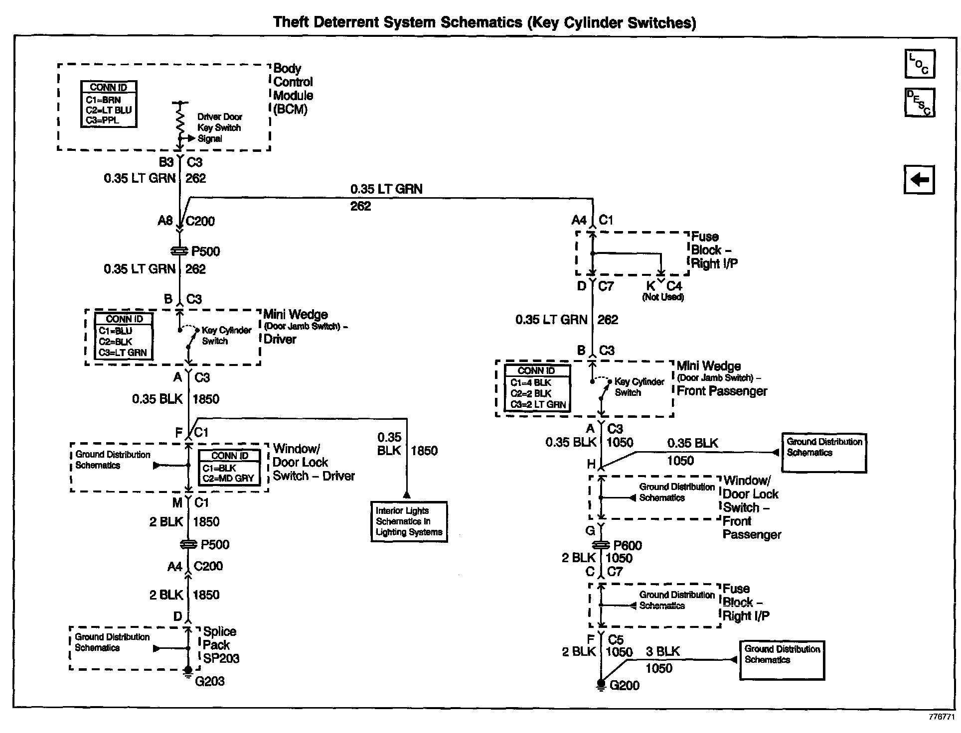 Theft Deterrent System Schematics: Key Cylinder Switches: