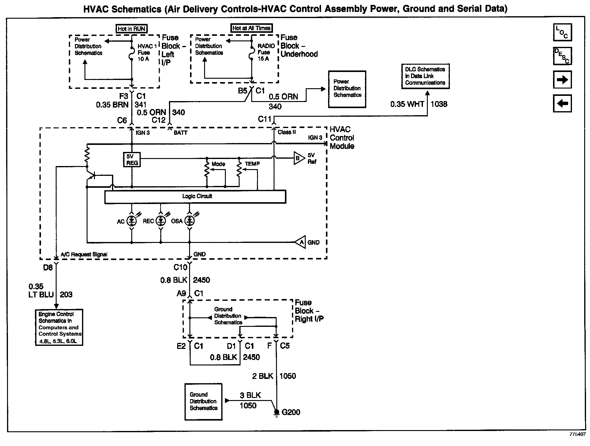 HVAC Schematics: Air Delivery Controls - HVAC Control Assembly Power, Ground And Serial Data: