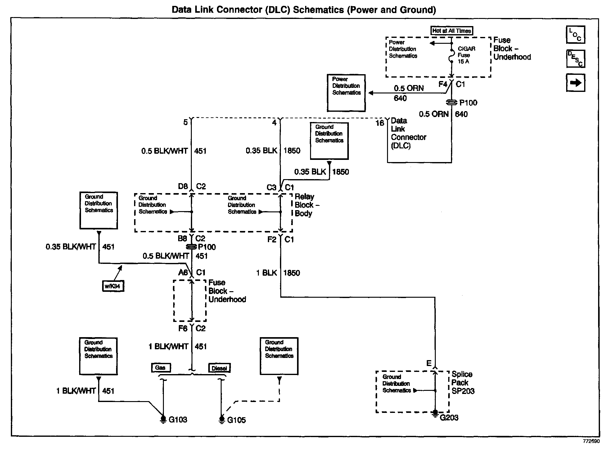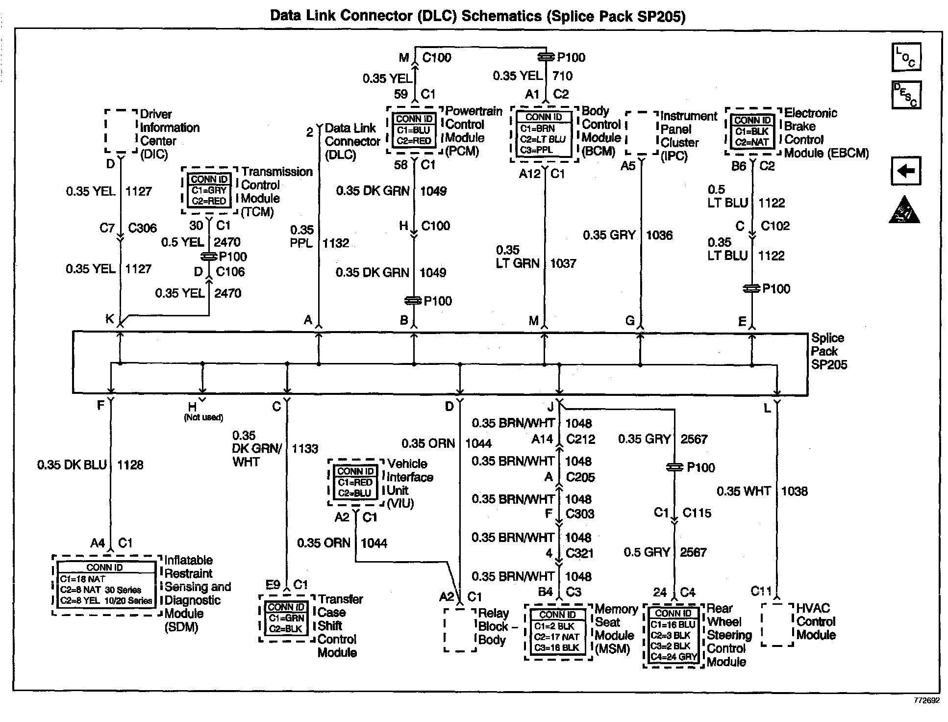 Data Link Connector (DLC) Schematics: Splice Pack SP205: