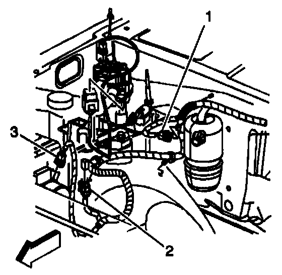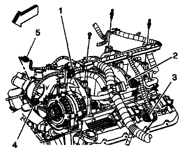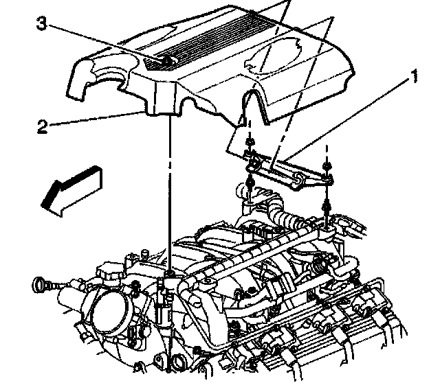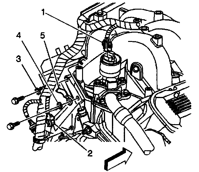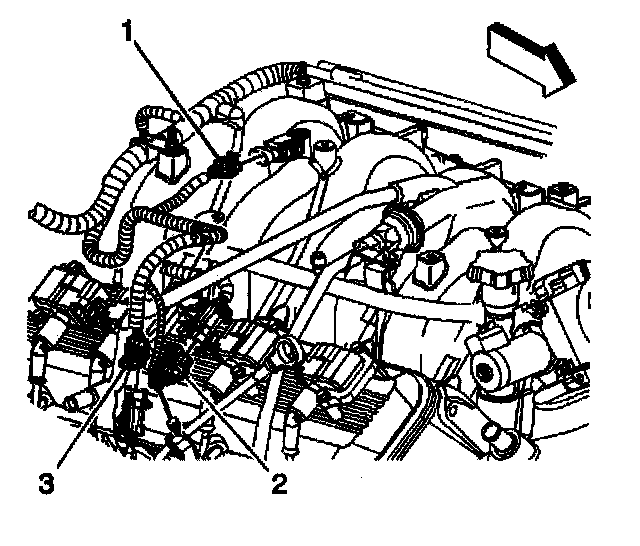 3. Loosen the intake manifold sight shield bolt (3).