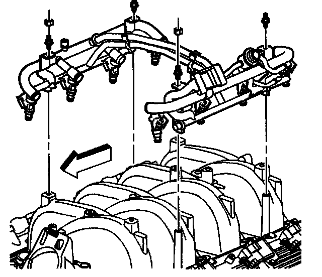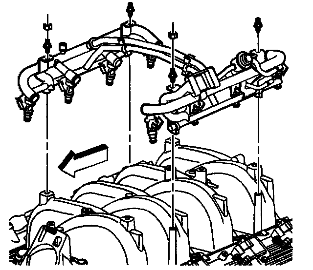 13. If replacing the intake manifold, install the fuel rail.