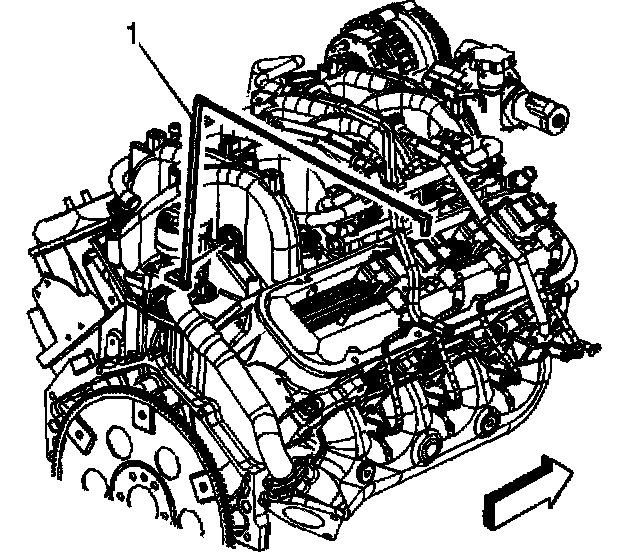 20. Install the bypass valve vacuum hose (1) to the intake manifold.