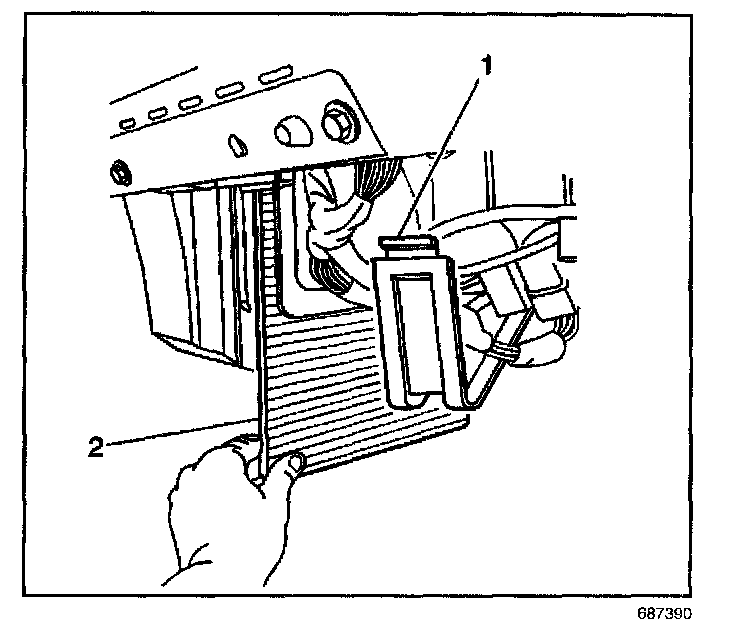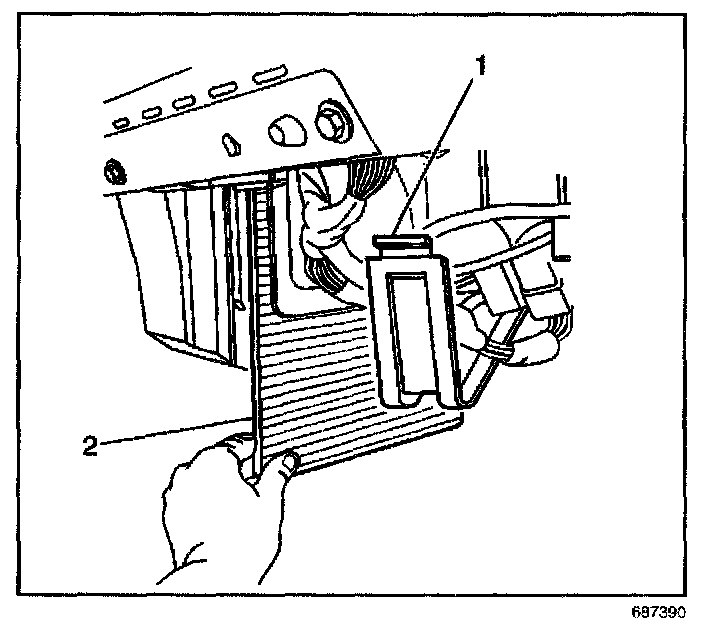 4. Remove the passenger compartment air filter (2).