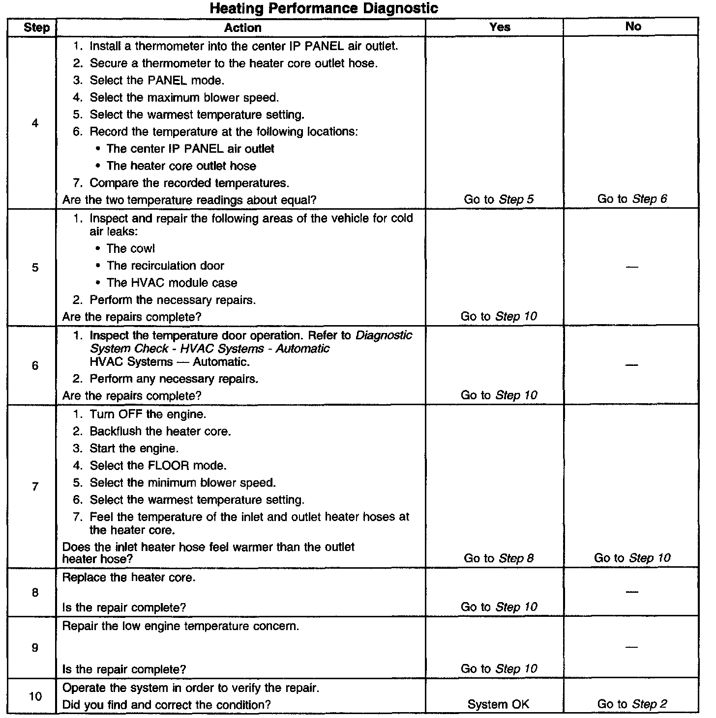 Heating Performance Diagnostic