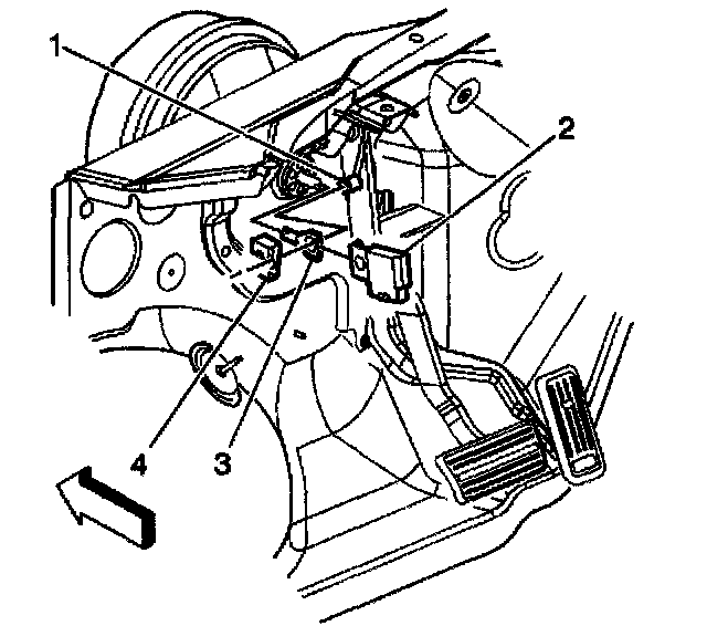 1. Disconnect the electrical connector from the stop lamp switch (2).