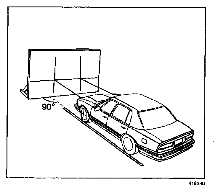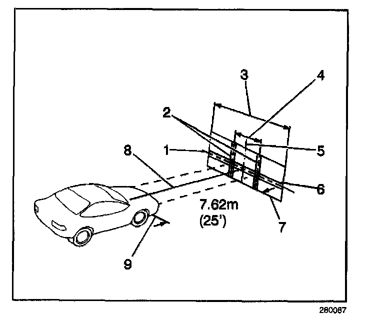 - After the aiming screen has been set up in its permanent location, it is necessary to paint a reference line on the floor directly under the lens of the lamps to indicate the proper location of the headlamps when they are being aimed: