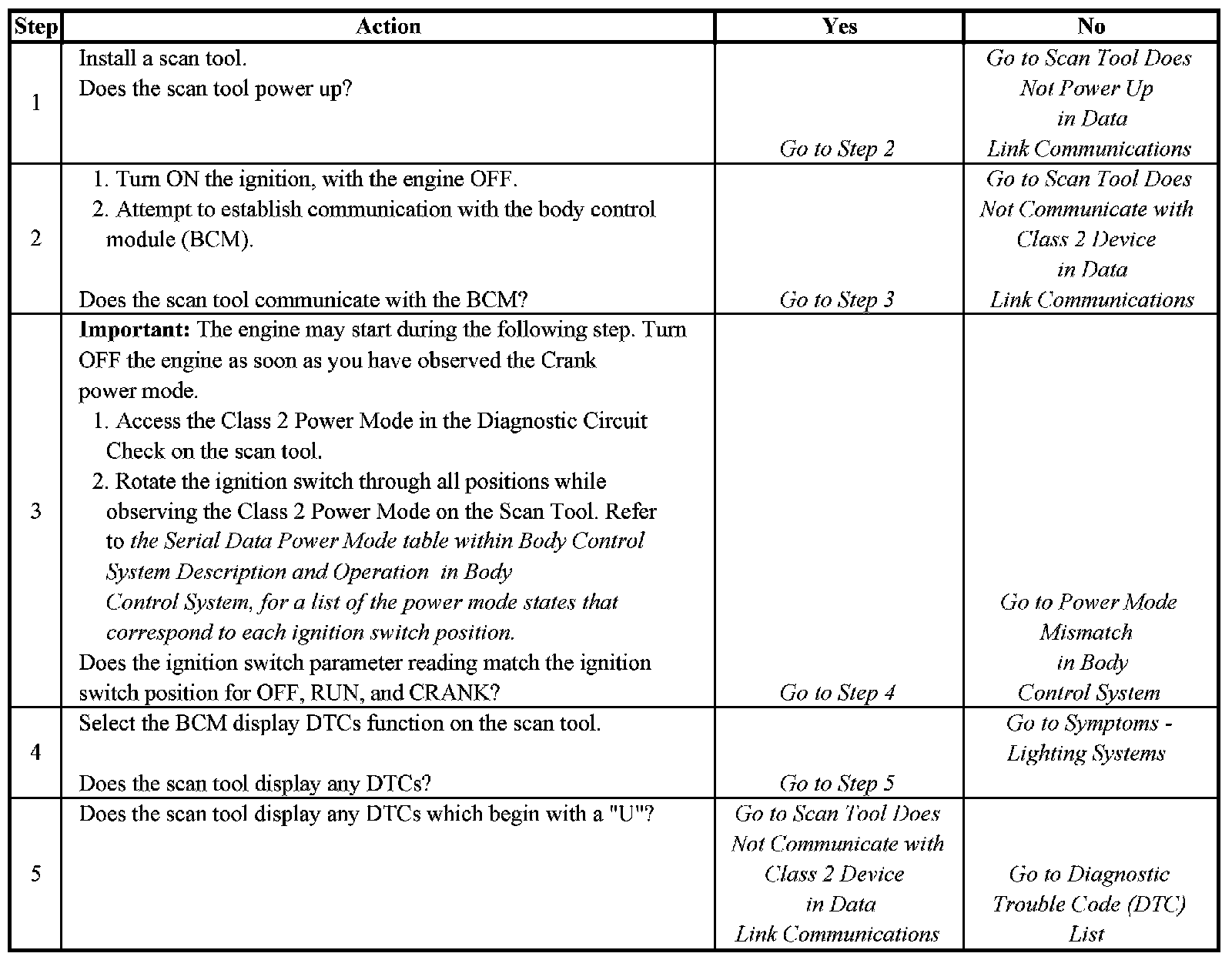 TEST DESCRIPTIONDiagnostic System Check - Lighting Systems - Steps 1-5: