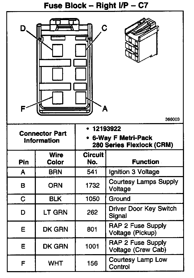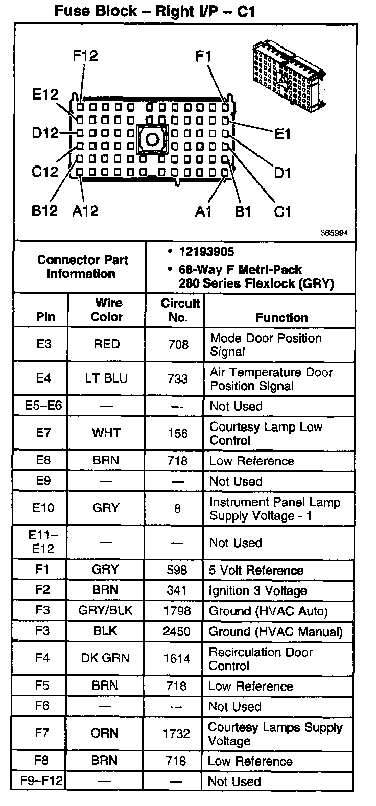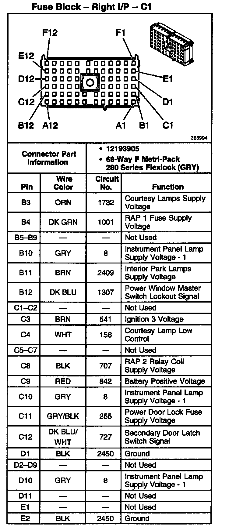 Fuse Block - Right I/P - C1 Part 3:
