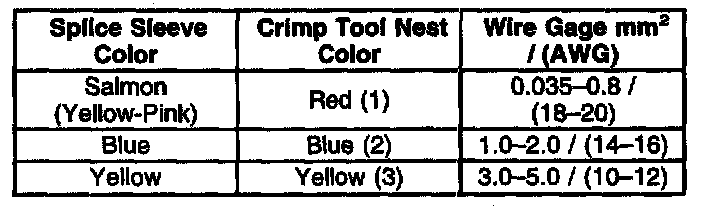 4. Select the proper sealed splice sleeve according to the wire size. Refer to the table at the beginning of the repair procedure for the color coding of the splice sleeves and the crimp tool nests.
