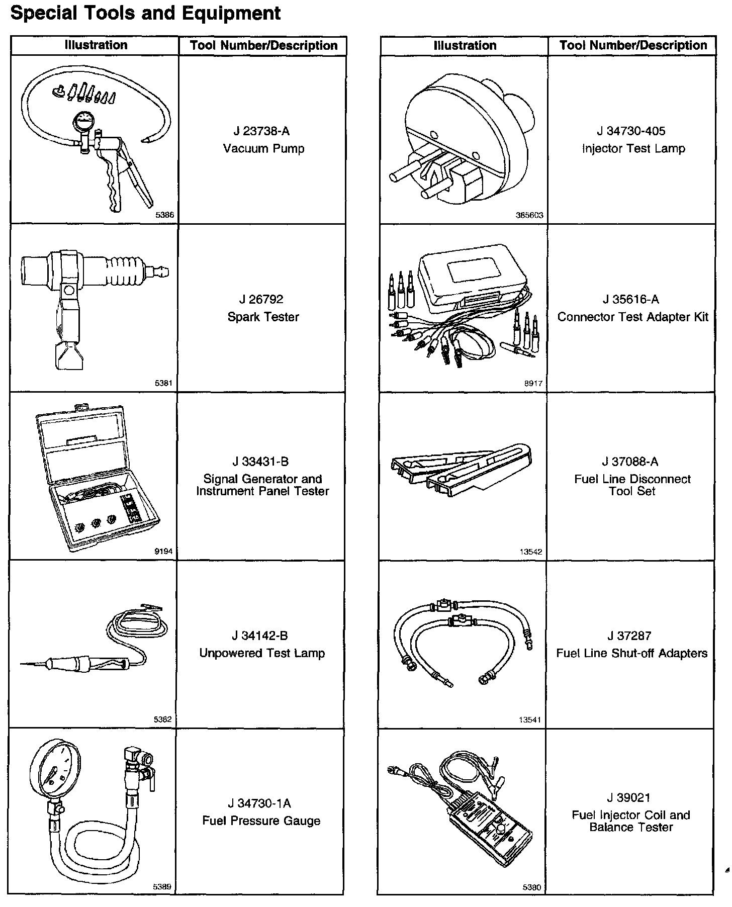 Special Tools And Equipment Part 1: