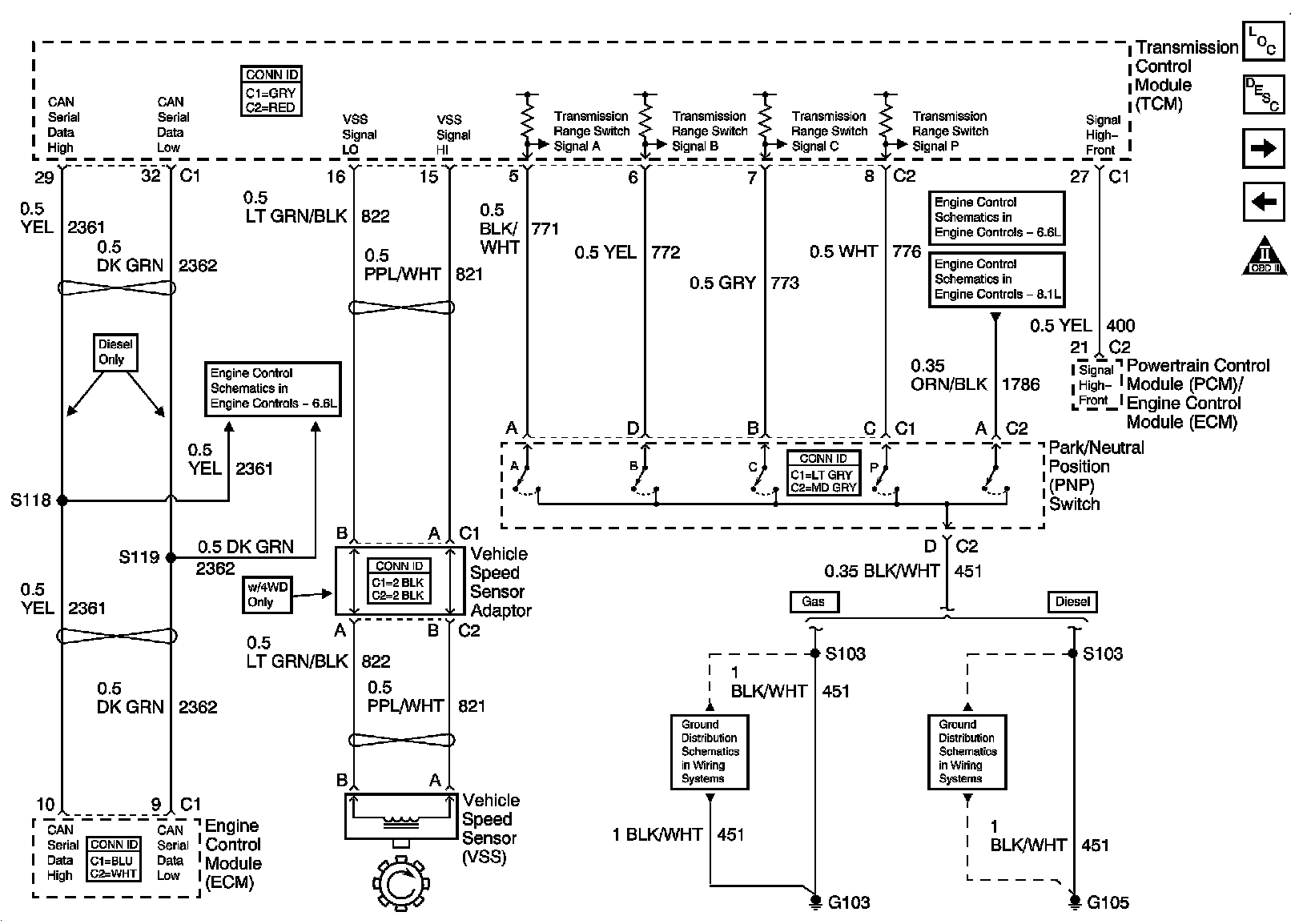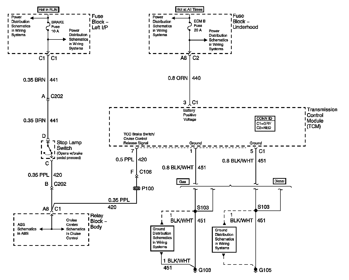 Automatic Transmission Controls SchematicsPower, Ground, And Stop Lamp Switch TCC Signal Circuit:
