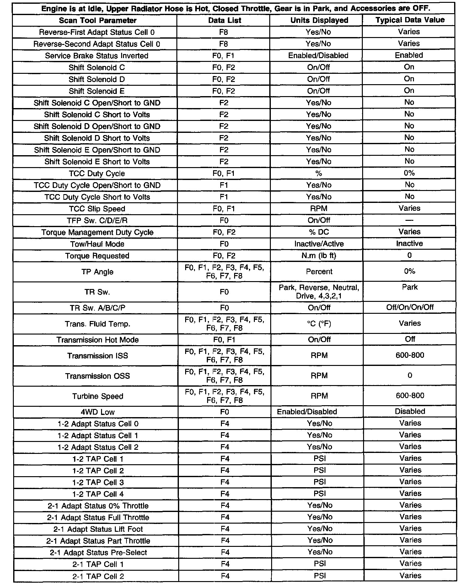 Transmission Scan Tool Data List