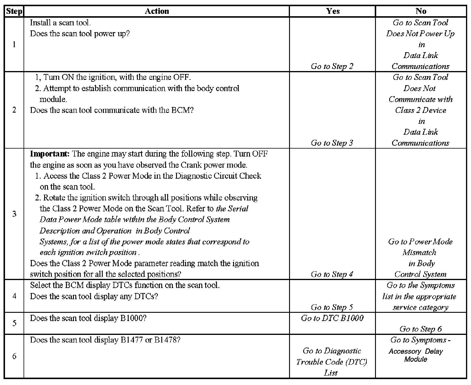 2. Lack of communication may be due to a partial malfunction of the class 2 serial data circuit or due to a total malfunction of the class 2 serial data circuit. The specified procedure will determine the particular condition.