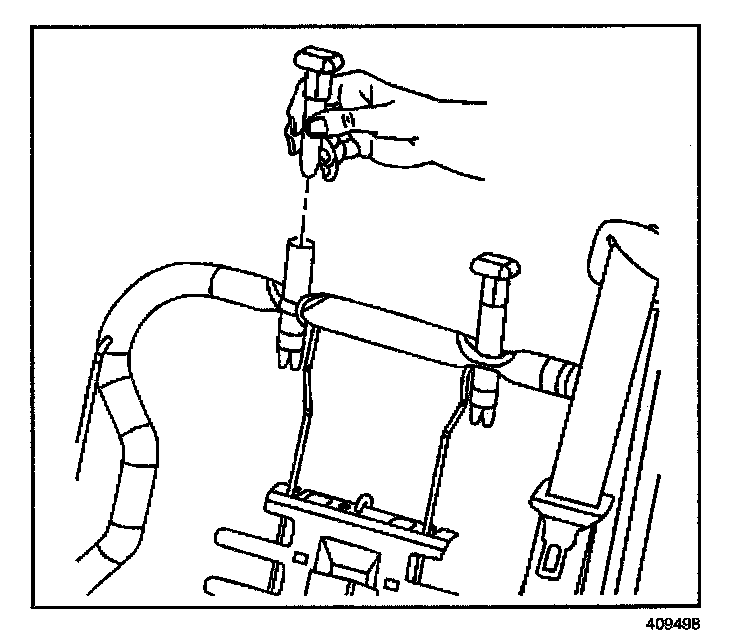 1. Install the head restraint retainers by pressing into the seat back frame until the retaining tabs snap into place at the bottom of the frame opening.
