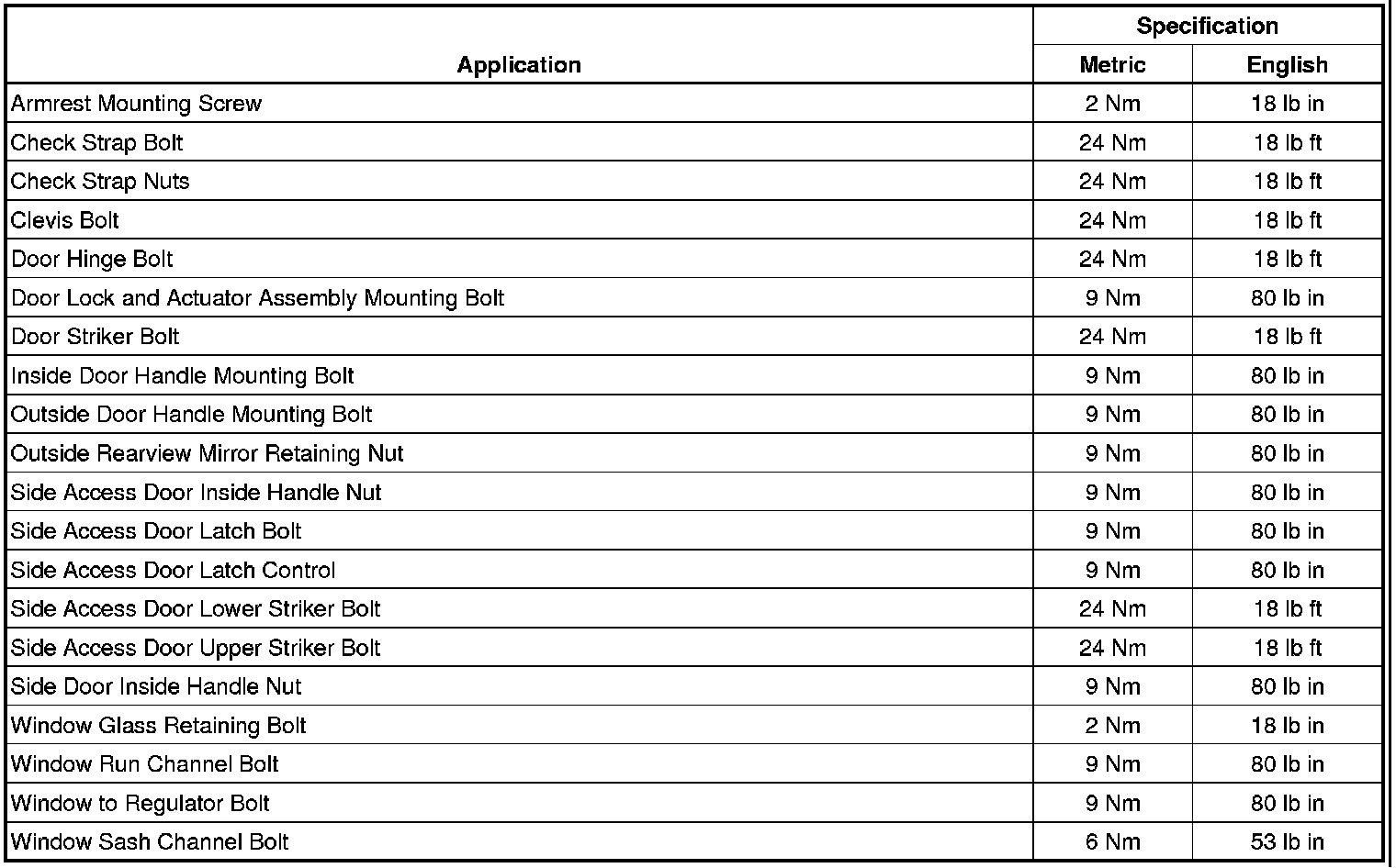Fastener Tightening Specifications