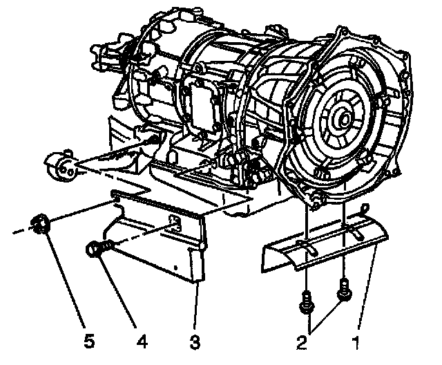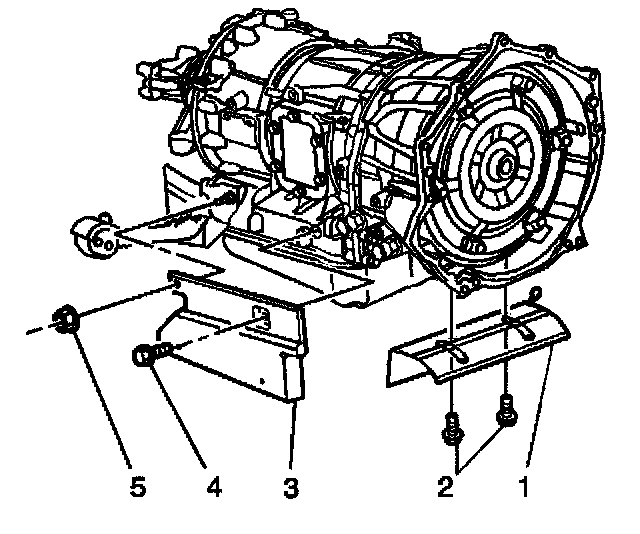 5. Remove the side heat shield (3) from the transmission.