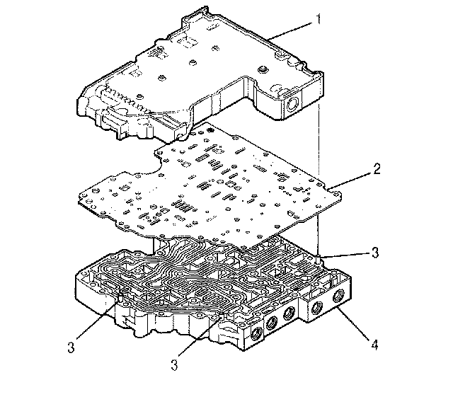 2. Align the separator plate (2) with the main valve body dowel pins (3).