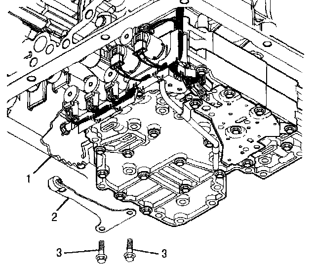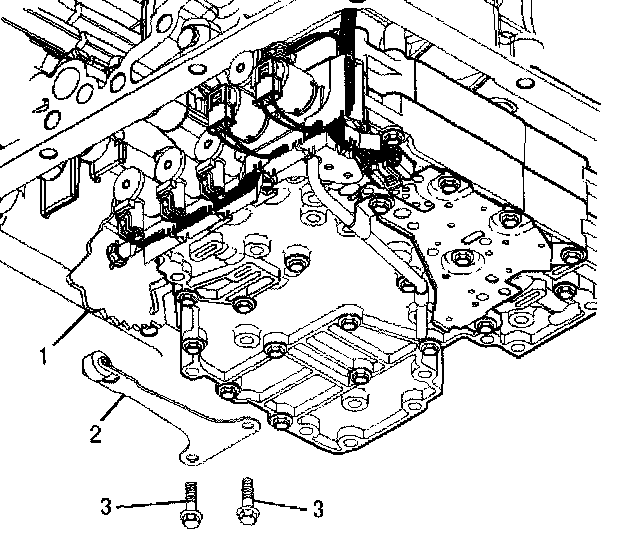 2. Remove the two detent spring bolts (3). Remove the detent spring assembly (2).