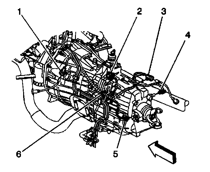 2. If equipped with the 6.6L engine, disconnect the Vehicle Speed Sensor (VSS) electrical connector (4).