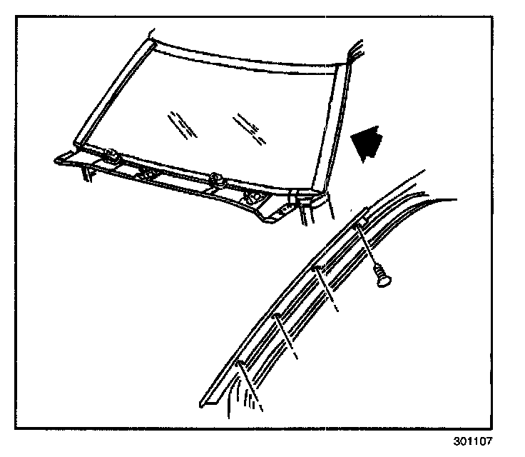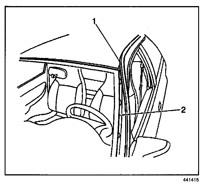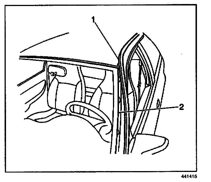 REMOVAL PROCEDURE1. Pull back the front door sealing weatherstrip (1) to expose the windshield reveal molding screws.