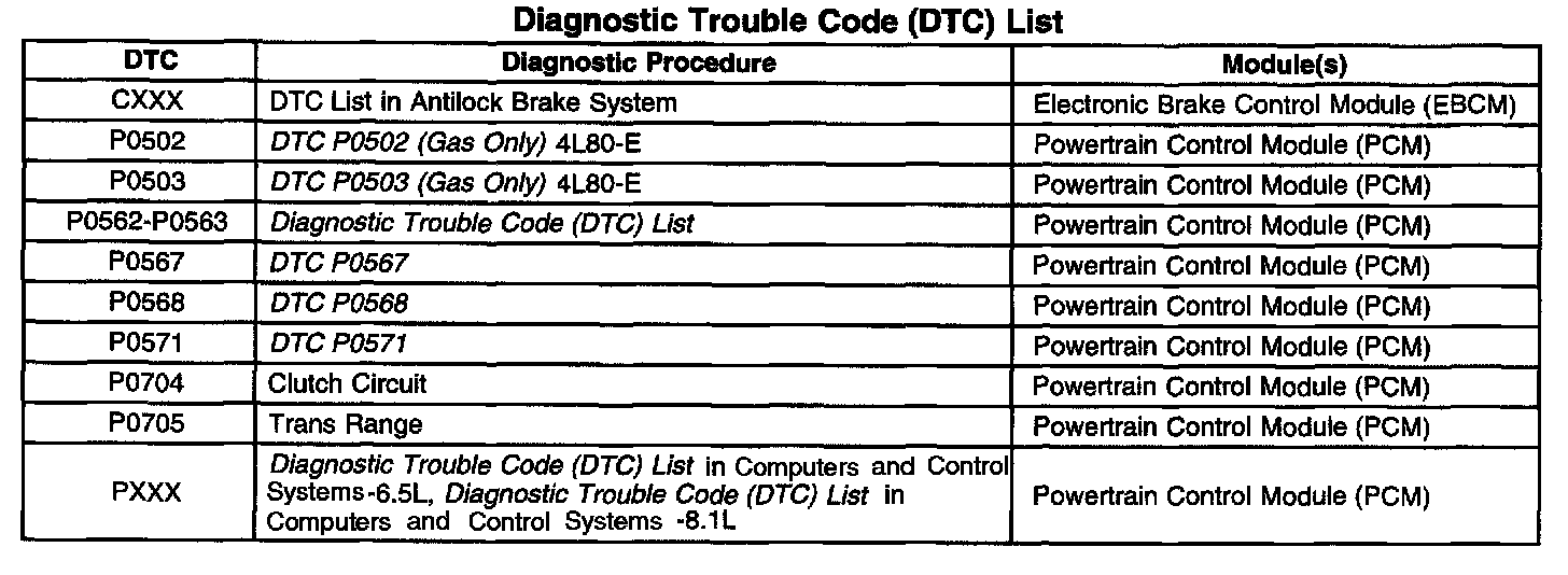 Diagnostic Trouble Code (DTC) List: