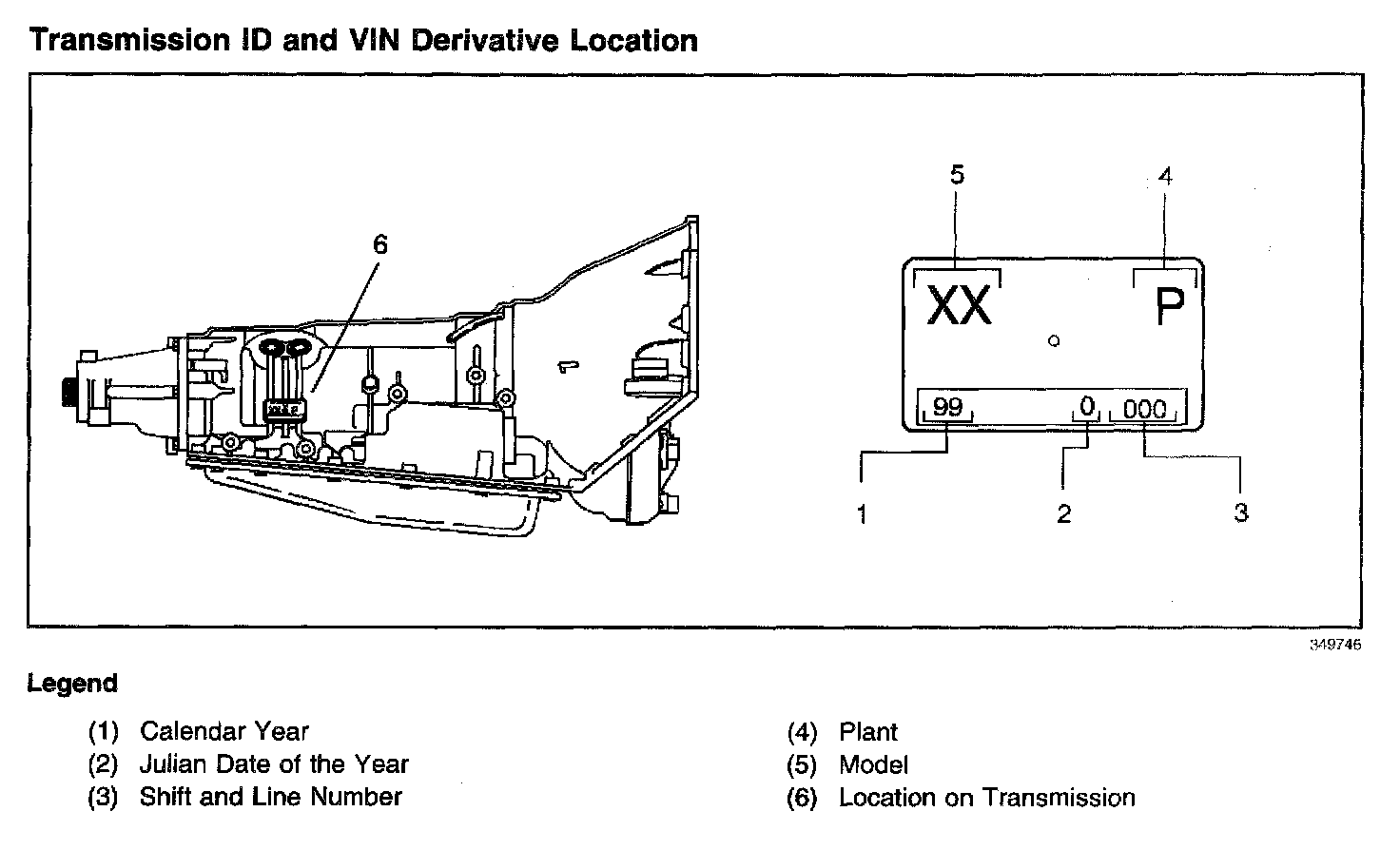 The transmission model identification is located on a label or tag on the transmission case. If this label is missing or unreadable, use the service parts identification label in order to identify the vehicle's transmission.