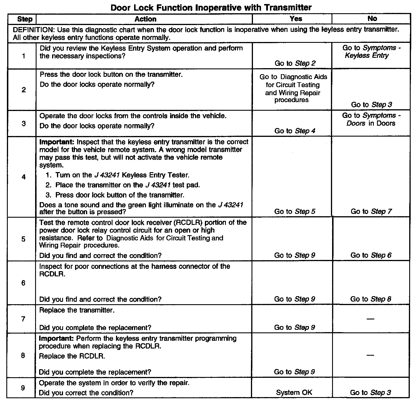 Door Lock Function Inoperative With Transmitter