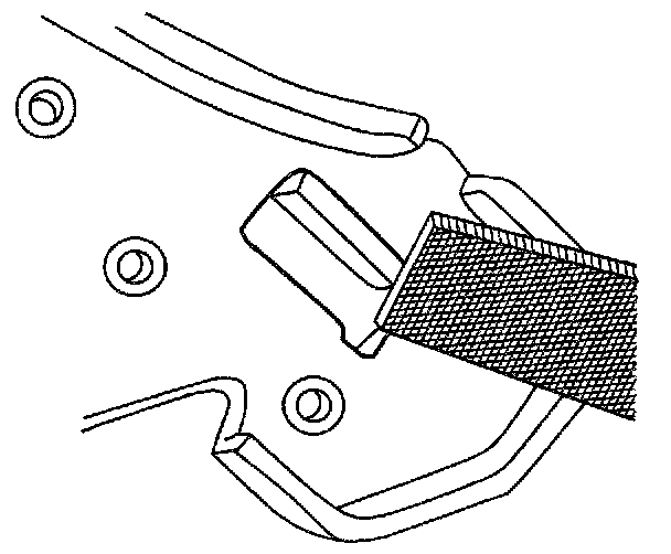 6. File the leading edge of the brake pad tang to aid in the installation of the brake pad to the caliper.