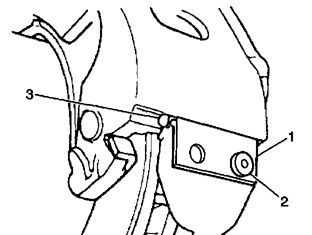 3. Install the caliper lock mounting bolt (2). The boss on the bolt must fit into the cutout in the support key (1).